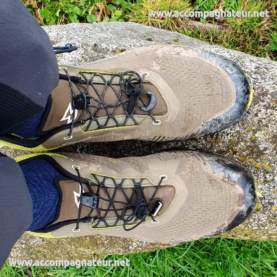 Après une quinzaine de randonnées, il n'y a aucun signe d'usure prématurée. Toutefois, nous ne sommes pas encore convaincus par les protections collées sur le tour de la chaussure.